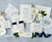 Invitation suites are sold as a customizable package. Only the options you select will be included in your suite. Text, envelopes, pocket enclosures, belly bands, backers and envelope liners are color customizable. Wording is also totally customizable.