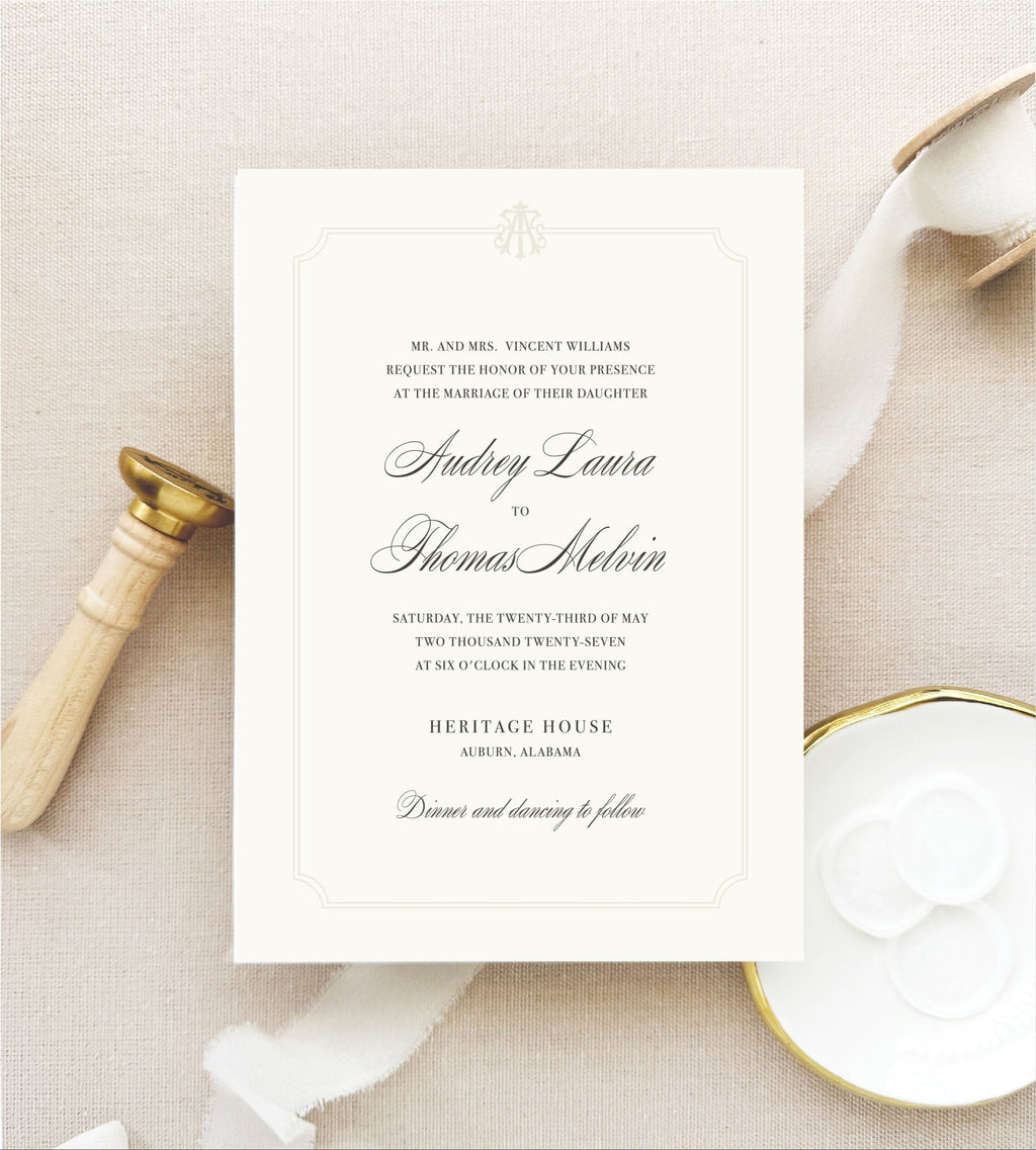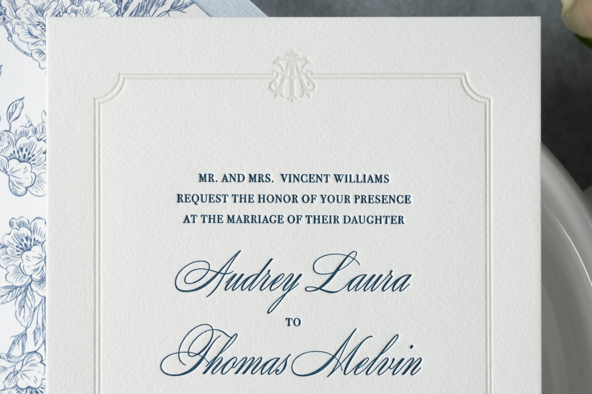 Our letterpress wedding invitations are hand-printed on antique presses dating from 1893, using luxurious cotton papers.