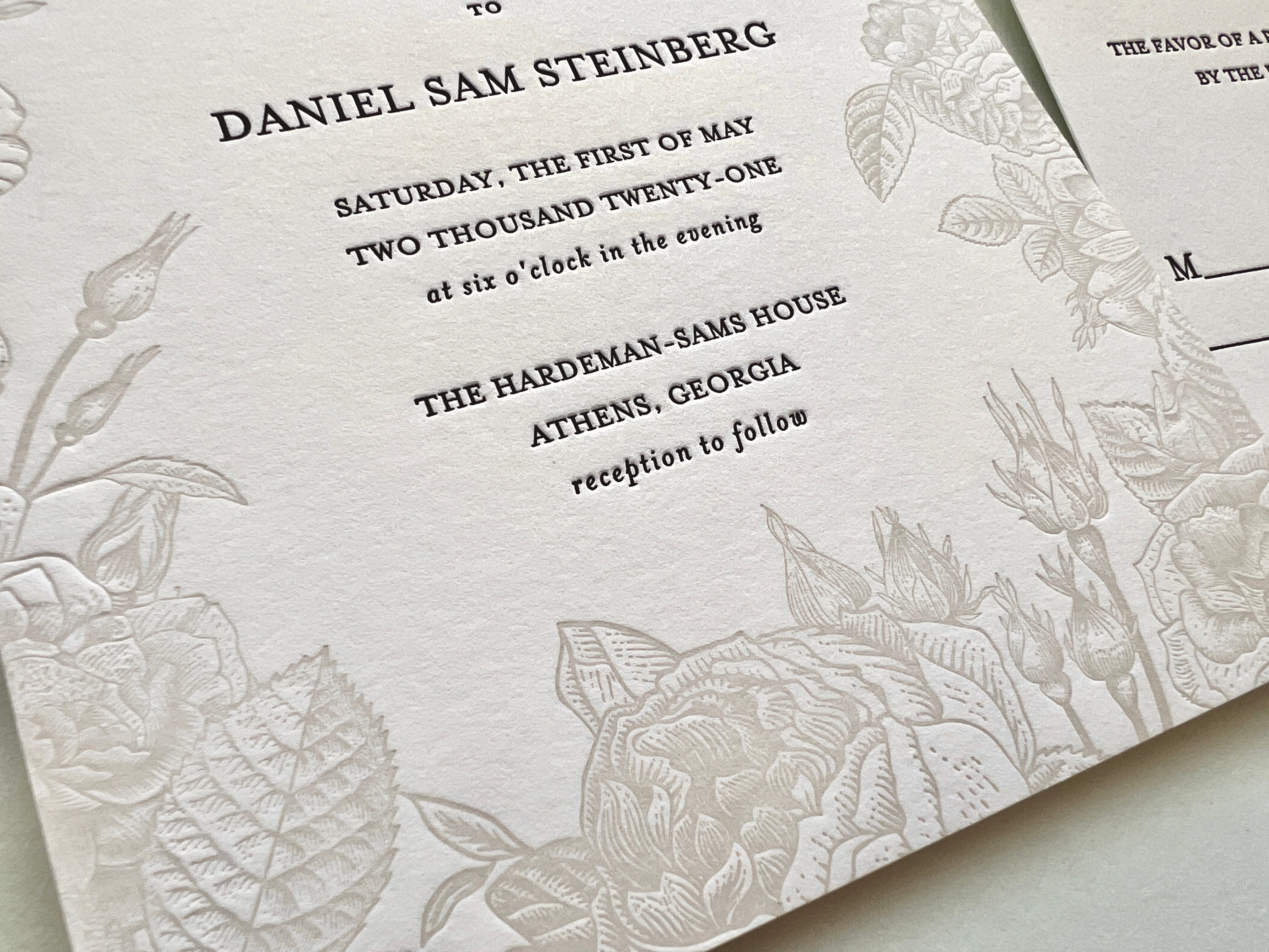 Our letterpress wedding invitations are hand-printed on antique presses dating from 1893, using luxurious cotton papers.