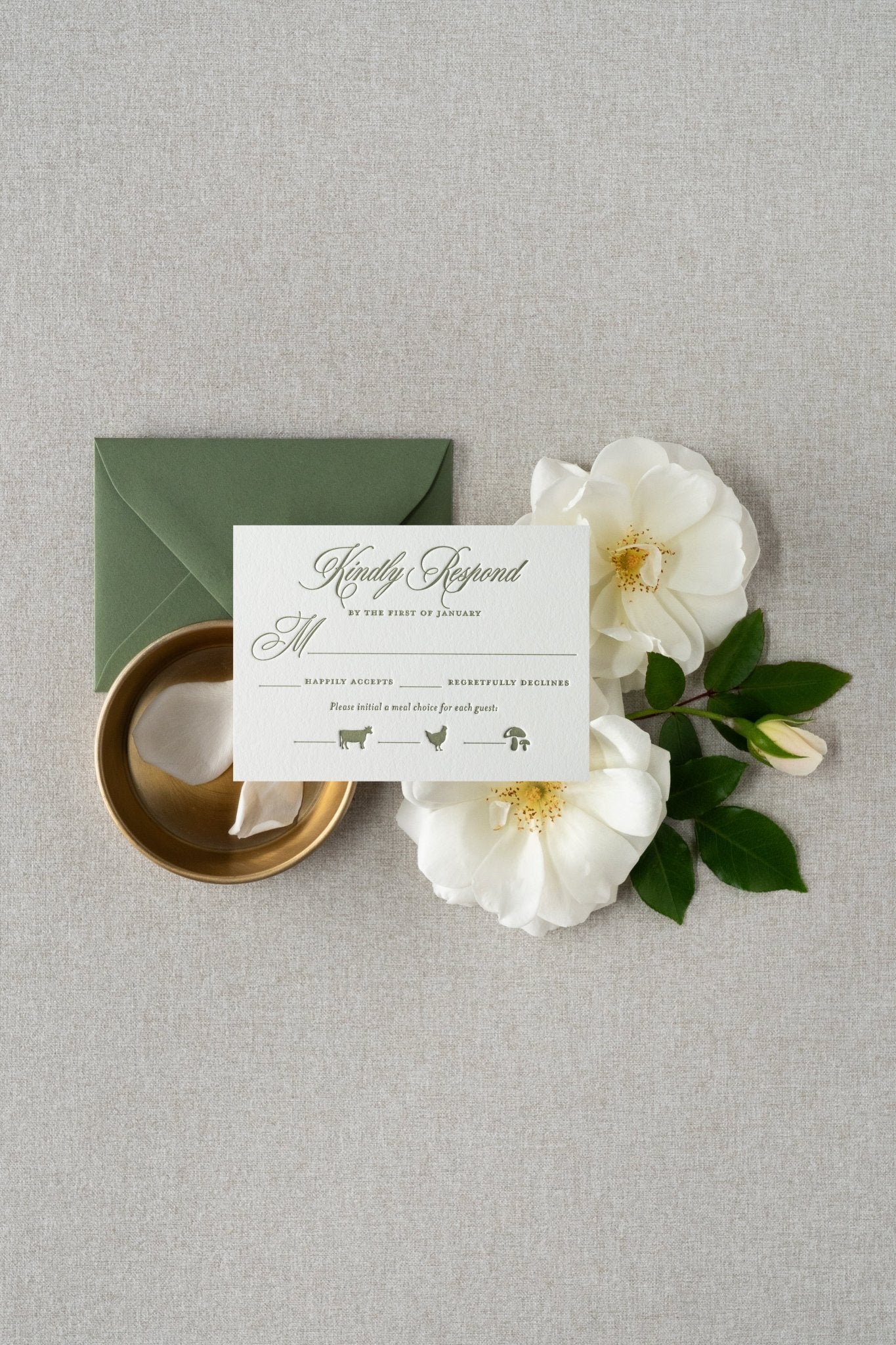 When planning your perfect wedding, you must be certain about every last detail. To that end, we are proud to offer you a pre-printed sample of our letterpress wedding suites. By purchasing a sample of our wedding invitation suites, you can see it, feel it, and experience it in person before committing to its style sight unseen. Designed for the modern yet timeless bride, these letterpress invitations invoke the charm of yesteryear through luxurious cotton paper and sweeping calligraphy brought to life with an antique printing press.
